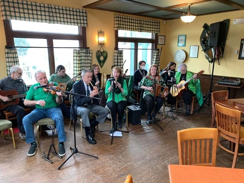 The Shamrogues perform as duos, trios, or larger ensembles, playing traditional jigs, reels, hornpipes, marches, waltzes, polkas, slides, and ballads on tin whistle, low whistle, guitar, bodhran, fiddle, wooden flute, mandolin, bouzouki, concertina, accordion, and harmonica.